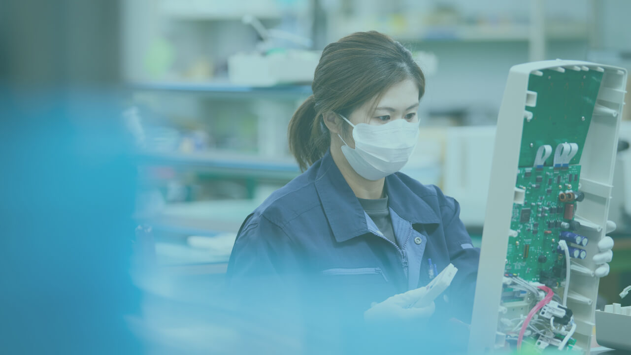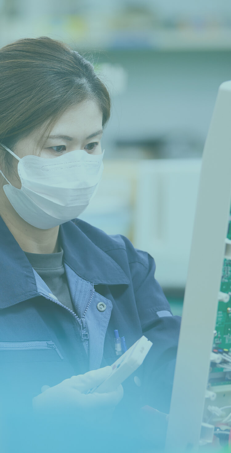 私たちは研究開発から製品製造、製品販売そしてアフターケアまでのすべてを一貫してグループ内で行うトータル管理システムを構築し、顧客満足を第一に考え、小回りの利く医療機器メーカーでありたいと考えています。成形金型や基板の設計、部品調達から製造そして販売、アフターサービスに至るまですべての管理をグループ企業内で行っており、当社製品をお客さまに安心してご使用いただけるようこれからも努めてまいります。